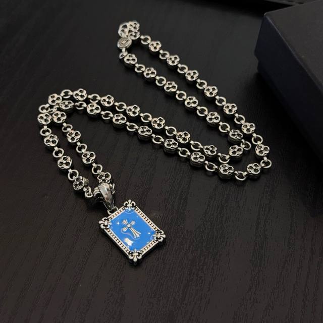 新款 专柜品质 Chrome Hearts克罗心经典复古花球项链 方牌十字架吊坠 凹凸造型不同的花纹设计风格 呈现出与众不同 十字架 童军花是克罗心的志 所以更