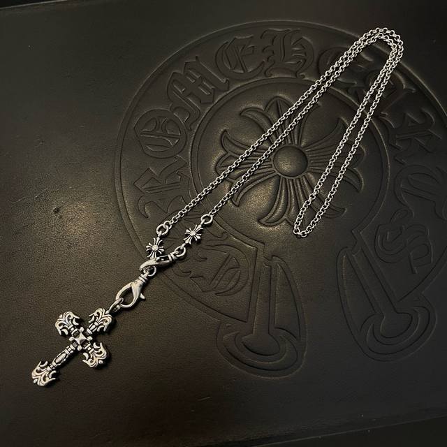 新款 专柜品质 Chrome Hearts克罗心 经典复古多元素项链 满钻十字花吊坠 凹凸造型不同的花纹设计风格 呈现出与众不同 十字架...