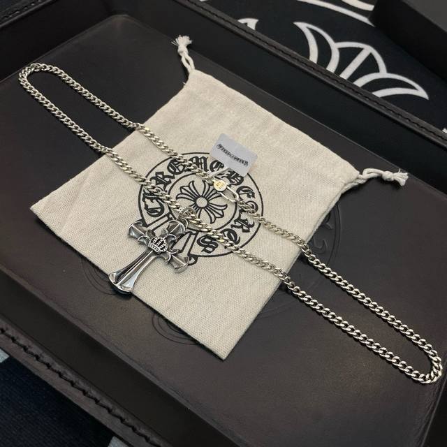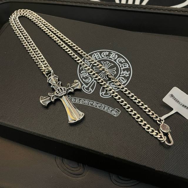 新款 专柜品质 Chrome Hearts克罗心 经典复古多元素项链 十字架吊坠 凹凸造型不同的花纹设计风格 呈现出与众不同 十字架 童军花是克罗心的志 所以更