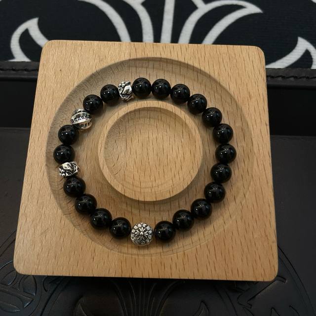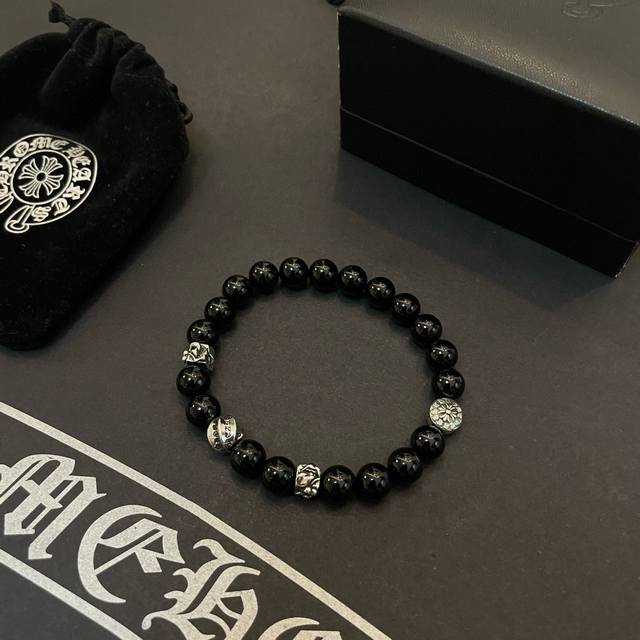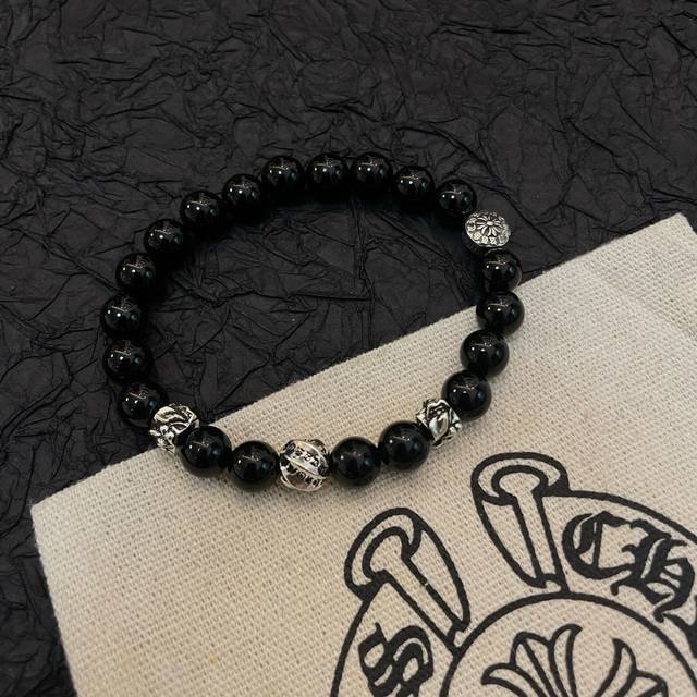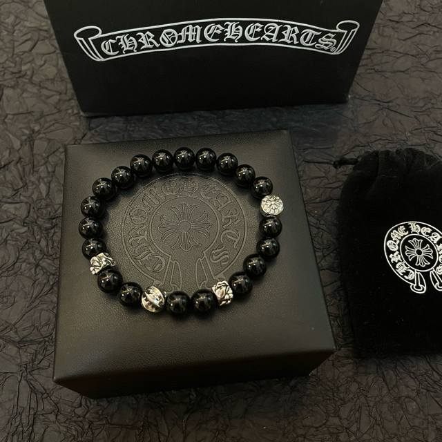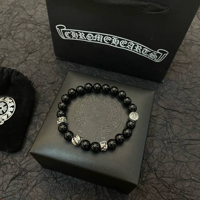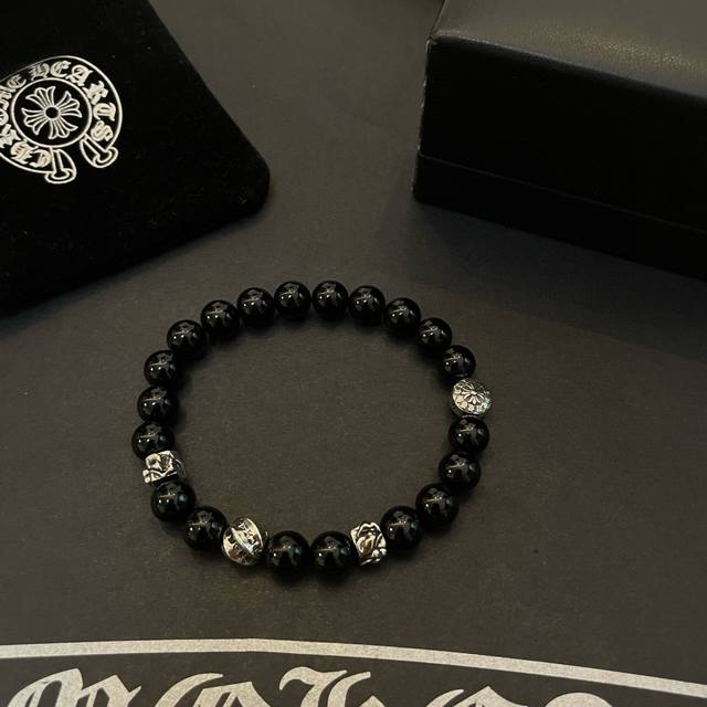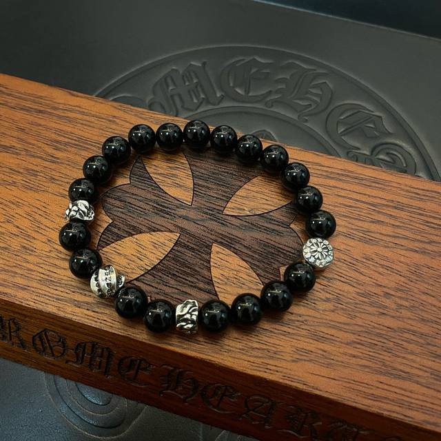 / 新款 专柜品质 Chrome Hearts克罗心 经典复古多元素黑曜石手链 手串,凹凸造型不同的花纹设计风格 呈现出与众不同 十字架 童军花是克罗心的志 所以更