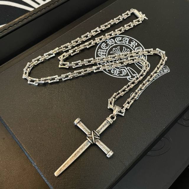 新款 专柜品质 Chrome Hearts克罗心 经典复古竹节项链 十字架吊坠 凹凸造型不同的花纹设计风格 呈现出与众不同 十字架 童军花是克罗心的志 所以更经