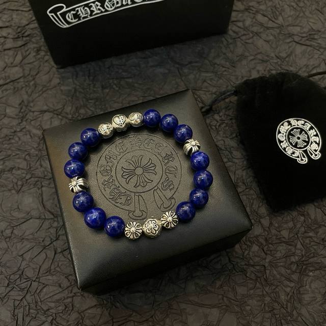 新款 专柜品质 Chrome Hearts克罗心 经典复古青金石多元素手链 凹凸造型不同的花纹设计风格呈现出与众不同 十字架童军花是克罗心的标志 所以更经久不衰