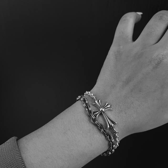 专柜品质Chrome Hearts克罗心 经典复古十字花黑钻宝剑手链,凹凸造型不同的花纹设计风格 呈现出与众不同 十字架...