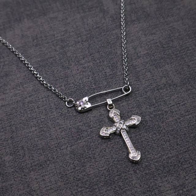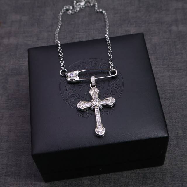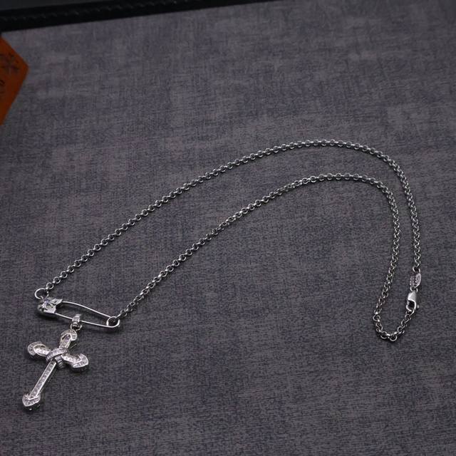 新款 专柜品质 Chrome Hearts克罗心经典复古白钻十字架一体链 凹凸造型不同的花纹设计风格 呈现出与众不同 十字架...