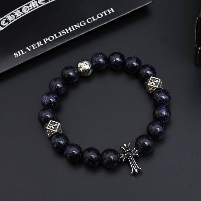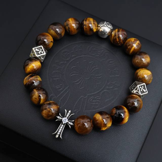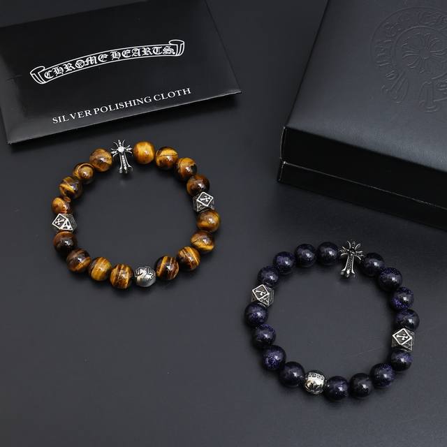 新款 专柜品质 Chrome Hearts克罗心 经典复古多元素黑曜石手串手链 ,快手 Ins...