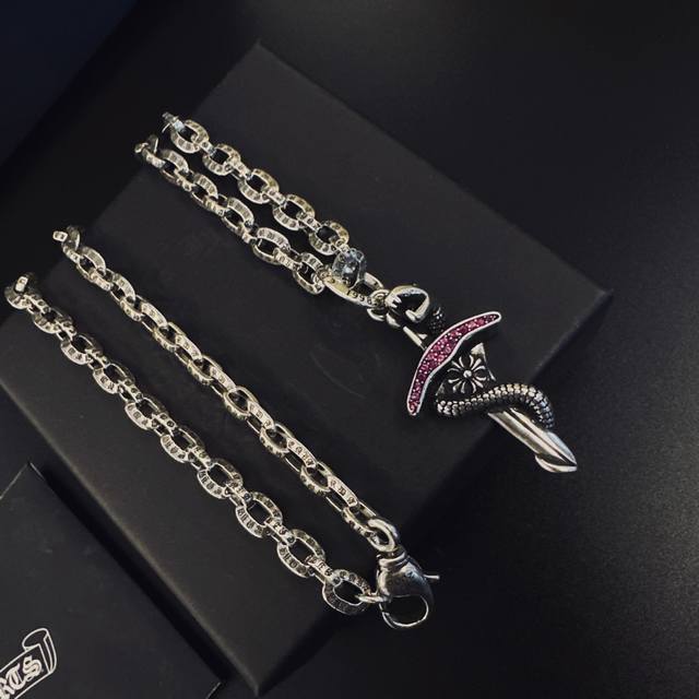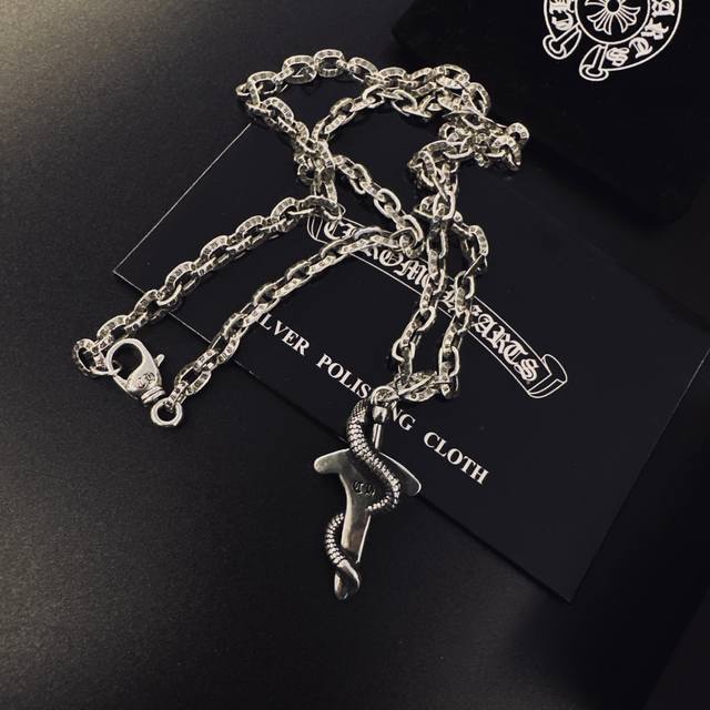 新款 专柜品质 Chrome Hearts克罗心经典复古蛇骨项链 ,蓝钻十字架吊坠,凹凸造型不同的花纹设计风格 呈现出与众不同 十字架...