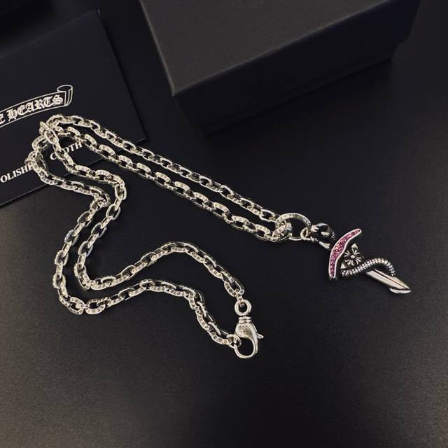新款 专柜品质 Chrome Hearts克罗心经典复古项链 火焰十字架吊坠 凹凸造型不同的花纹设计风格 呈现出与众不同 十字架...
