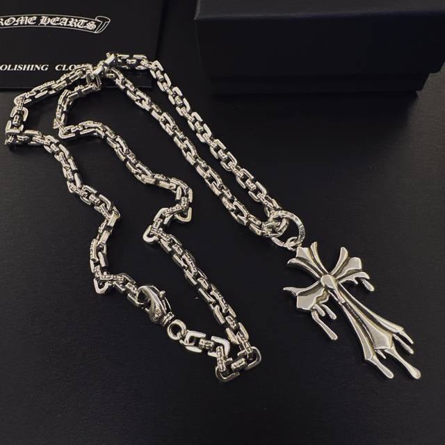 抖音 快手 Ins 小红书 直播热门,新款 专柜品质 Chrome Hearts克罗心锁扣字母项链 ,方牌十字架吊坠,凹凸造型不同的花纹设计风格...