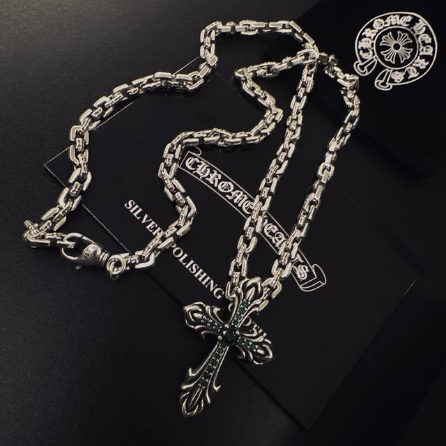 新款 专柜品质 Chrome Hearts克罗心经典复古项链 火焰十字架吊坠 凹凸造型不同的花纹设计风格 呈现出与众不同 十字架...