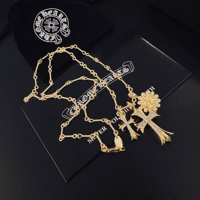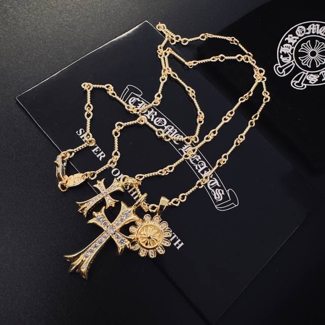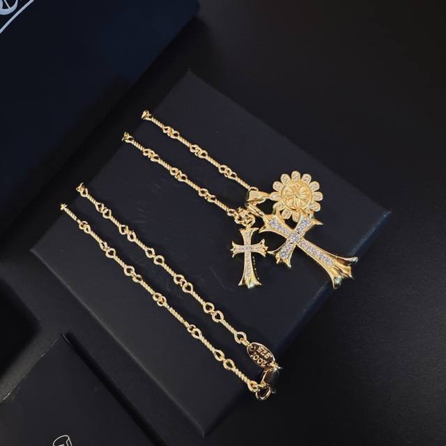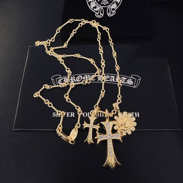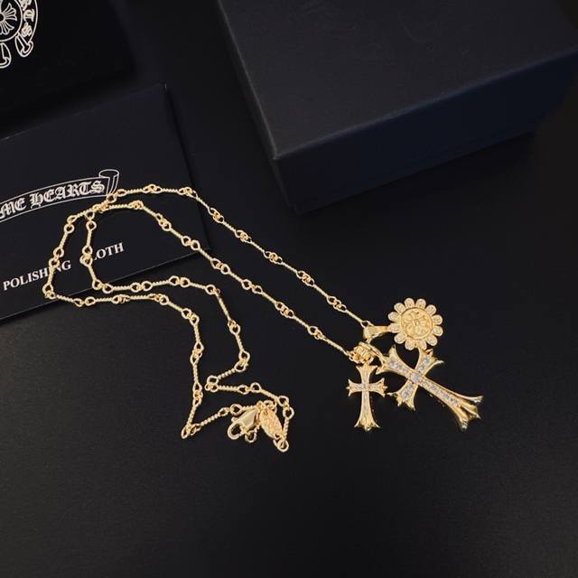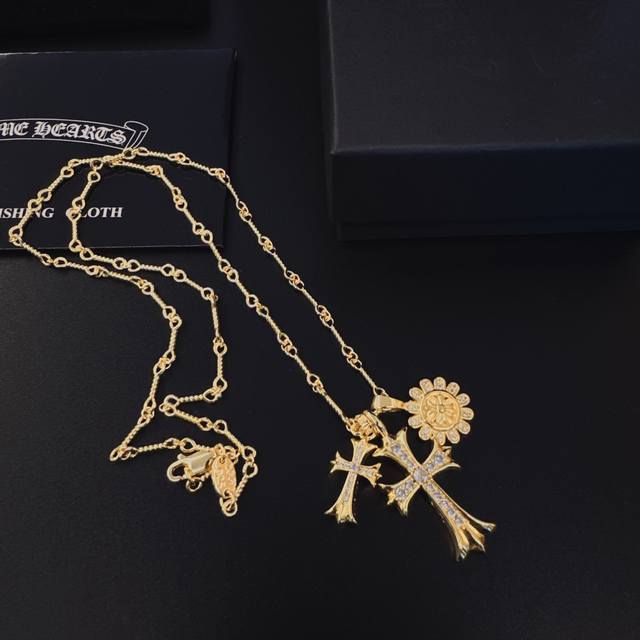 专柜品质 Chrome Hearts克罗心 经典复古项链 ,童军花十字架吊坠 凹凸造型不同的花纹设计风格 呈现出与众不同 十字架...