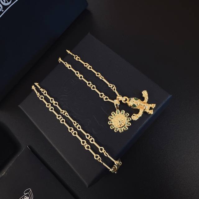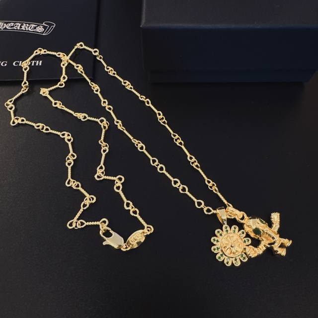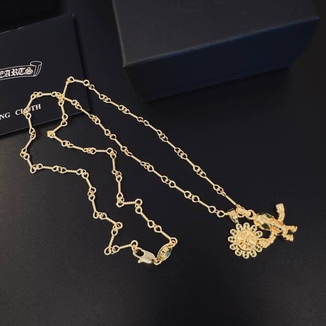 新款 专柜品质 Chrome Hearts克罗心别针皇冠钥匙项链,凹凸造型不同的花纹设计风格呈现出与众不同 十字架童军花是克罗心的标志...