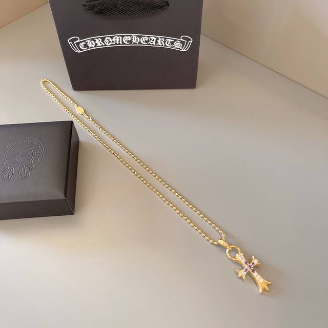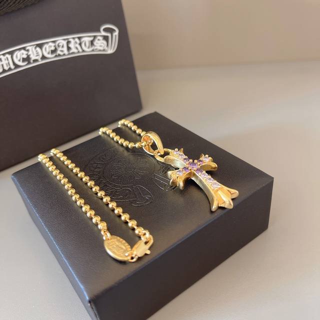 新款 专柜品质 Chrome Hearts克罗心经典复古花球项链 粉钻十字架吊坠 凹凸造型不同的花纹设计风格 呈现出与众不同 十字架...