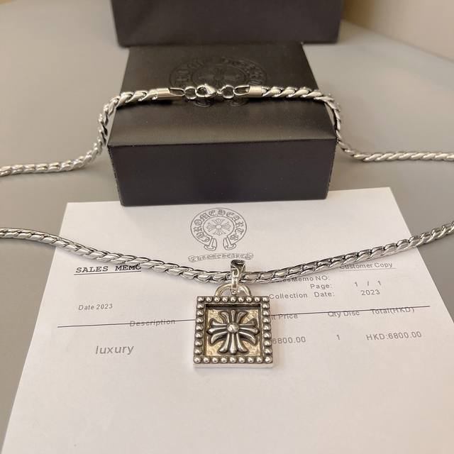 新款 专柜品质 Chrome Hearts克罗心复古十字架项链 方十字架吊坠 凹凸造型不同的花纹设计风格 呈现出与众不同 十字架...
