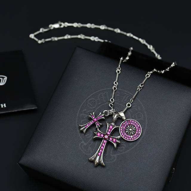 新款 专柜品质 Chrome Hearts克罗心经典复古十字架项链 十字架吊坠 凹凸造型不同的花纹设计风格 呈现出与众不同 十字架...