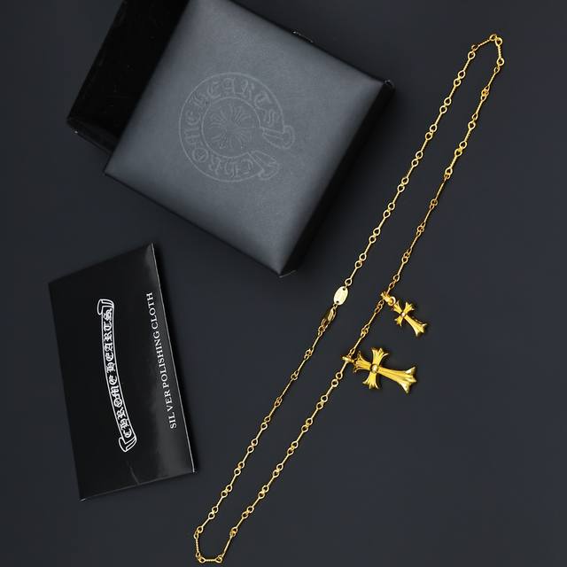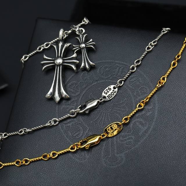 新款 专柜品质 Chrome Hearts克罗心黄金色多元素灵动十字架项链 凹凸造型不同的花纹设计风格 呈现出与众不同 十字架...