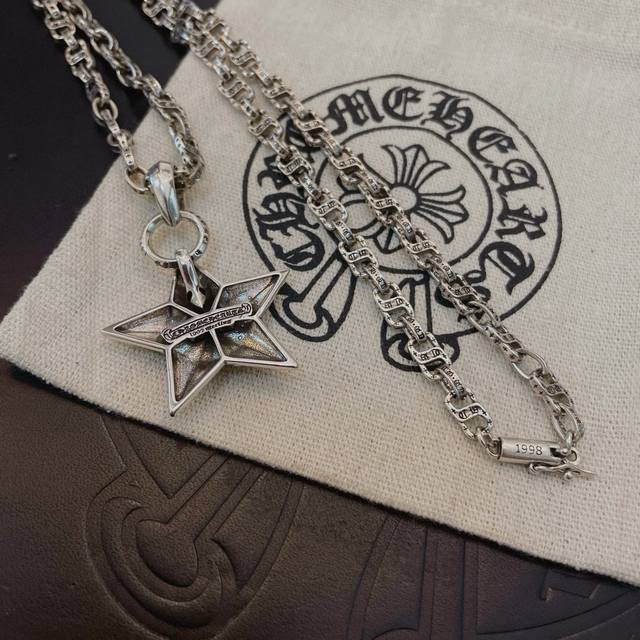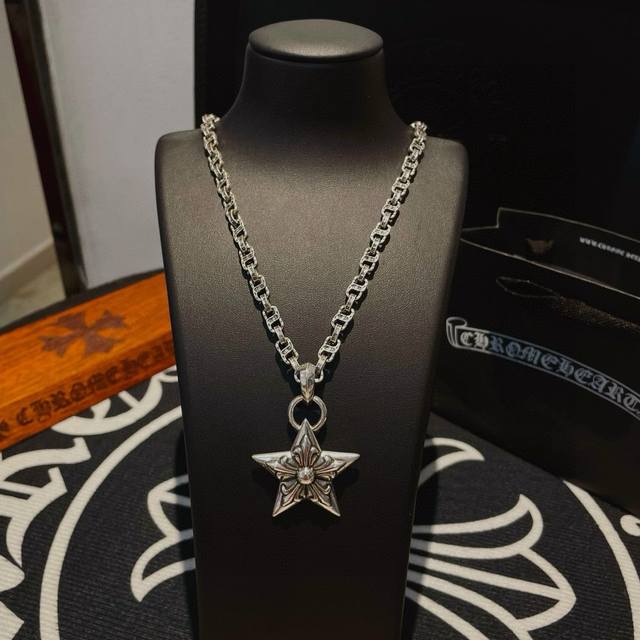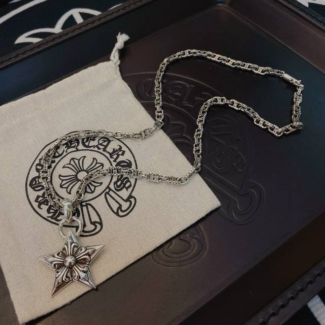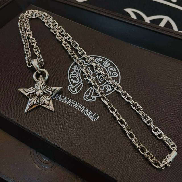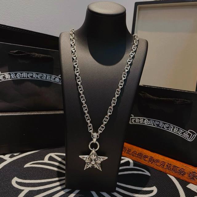 抖音 快手 Ins 小红书 直播热门 ,新款 专柜品质 Chrome Hearts克罗心字母项链 ,五星花吊坠,凹凸造型不同的花纹设计风格 呈现出与众不同 十字架 童军花是克罗心的志 所以更经久不衰 正品打版Chrome Hearts克罗心 区别市场普通轻版 对版对标品质 看字印细节 复古做旧灰氧程度.精工版本!!! 纯手工打造 ~正品开模潮流时尚必备 男女均可佩戴 情侣同款 官网原版 摇滚朋克泰银风格 复古元素 潮流百搭!