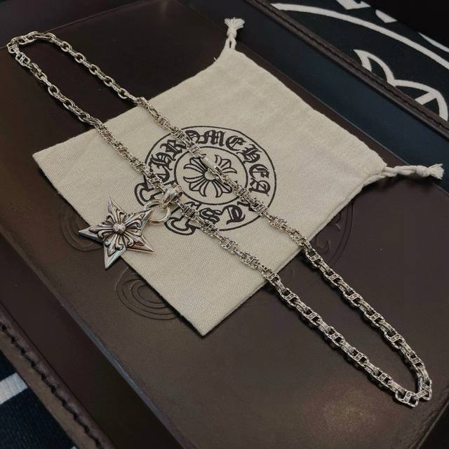 / 抖音 快手 Ins 小红书 直播热门 ,新款 专柜品质 Chrome Hearts克罗心字母项链 ,五星花吊坠,凹凸造型不同的花纹设计风格 呈现出与众不同 十字