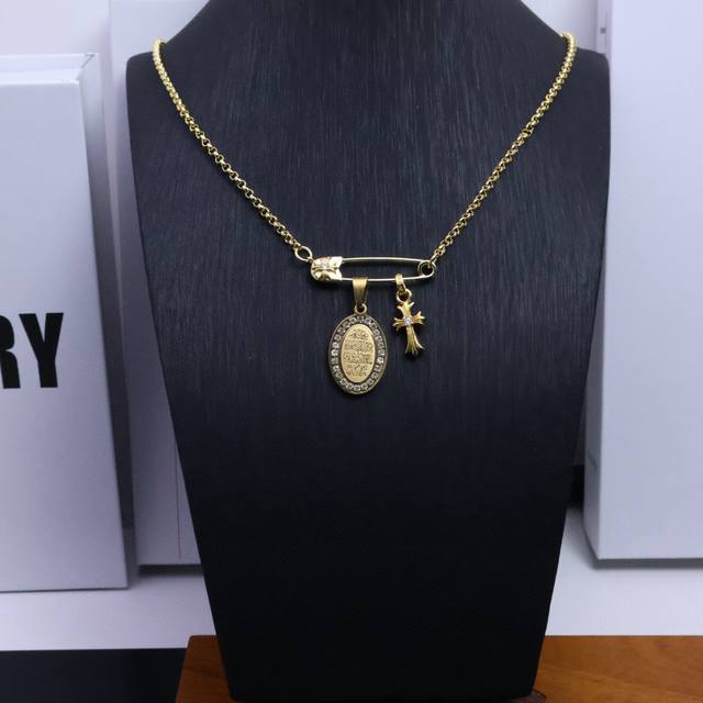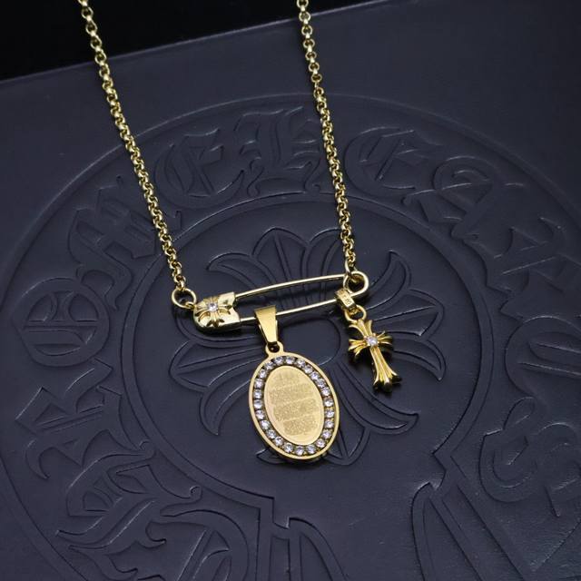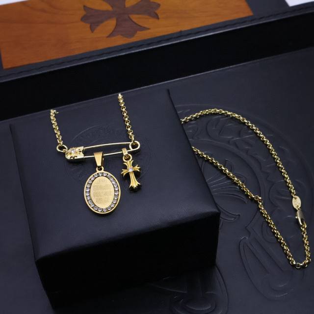 新款 专柜品质 Chrome Hearts克罗心经典复古项链,方牌宝剑吊坠 凹凸造型不同的花纹设计风格 呈现出与众不同 十字架...