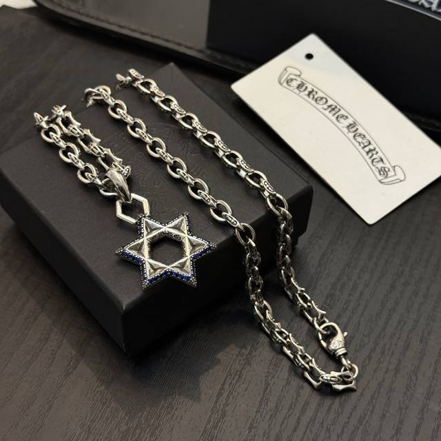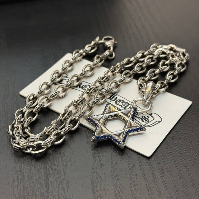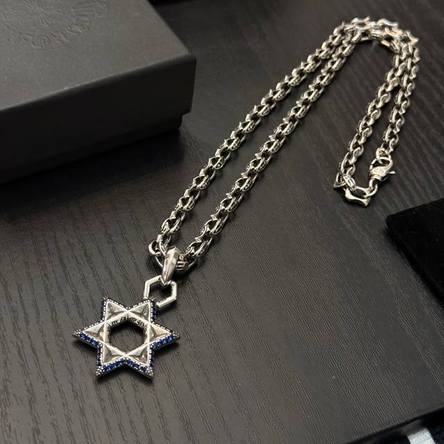 FFF 新款 专柜品质 Chrome Hearts克罗复古十字架项链 蓝钻六芒星吊坠 凹凸造型不同的花纹设计风格 呈现出与众不同 十字架 童军花是克罗心的志 所以更经久不衰 正品打版Chrome Hearts克罗心 区别市场普通轻版 对版对标品质 看字印细节 复古做旧灰氧程度.精工版本!!! 纯手工打造 ~正品开模潮流时尚必备 男女均可佩戴 情侣同款 官网原版 摇滚朋克泰银风格 复古元素 潮流百搭! DDD