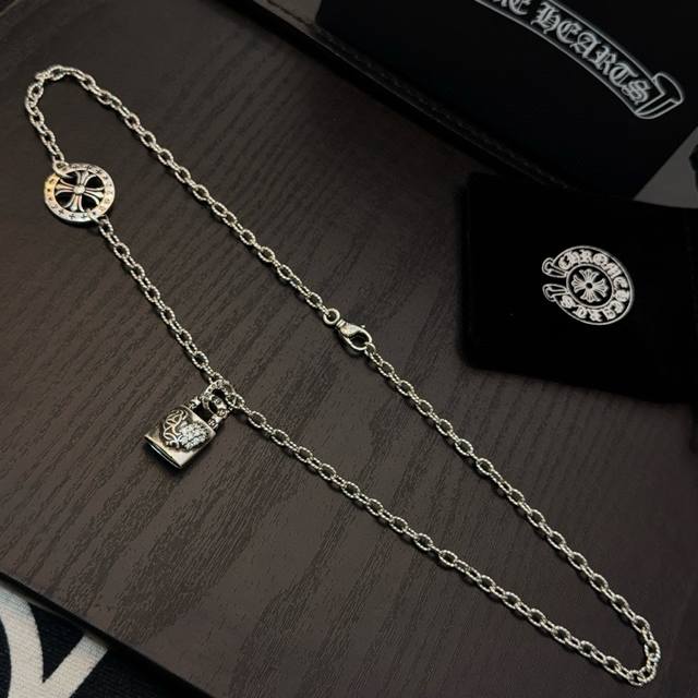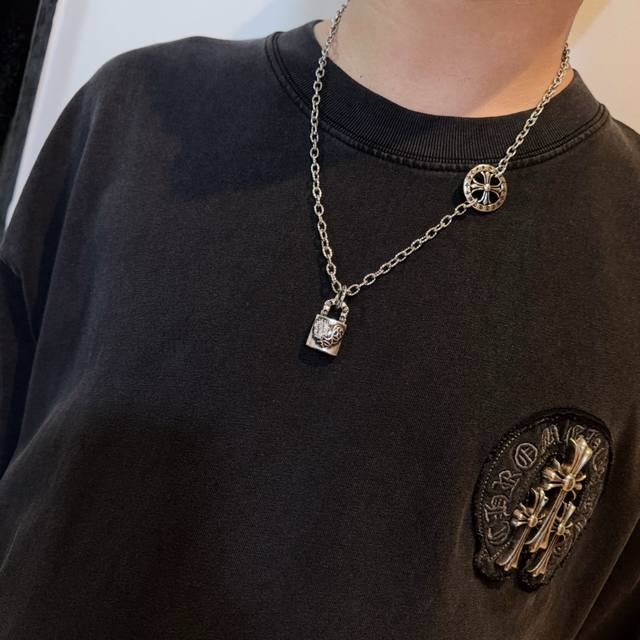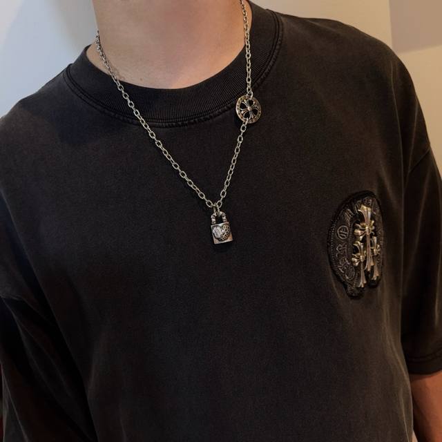 新款 专柜品质 Chrome Hearts克罗心复古十字架项链 藤蔓爱心锁头吊坠 凹凸造型不同的花纹设计风格呈现出与众不同 十字架童军花是克罗心的标志 所以更经