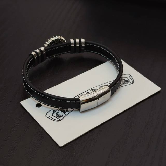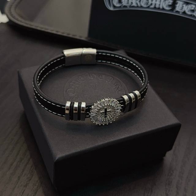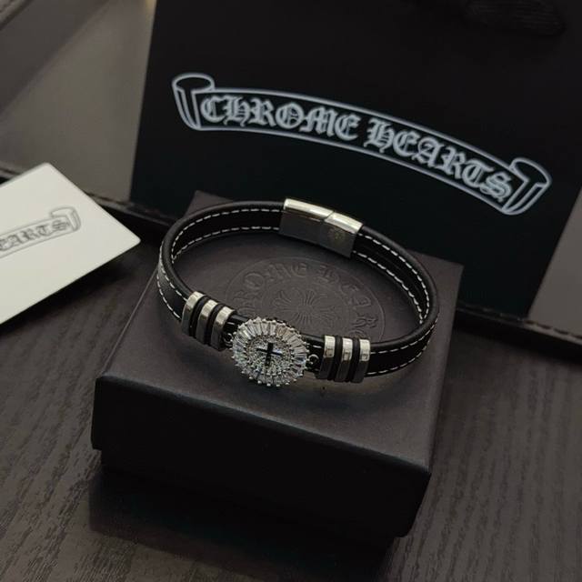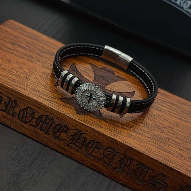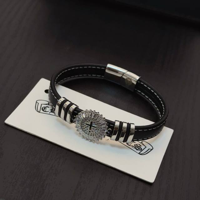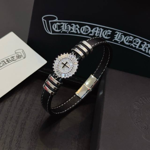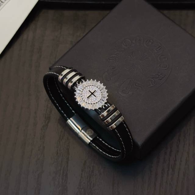 / 新款 专柜品质 Chrome Hearts克罗心皮绳手镯手绳,凹凸造型不同的花纹设计风格呈现出与众不同 十字架童军花是克罗心的标志 所以更经久不衰 正品打版Ch
