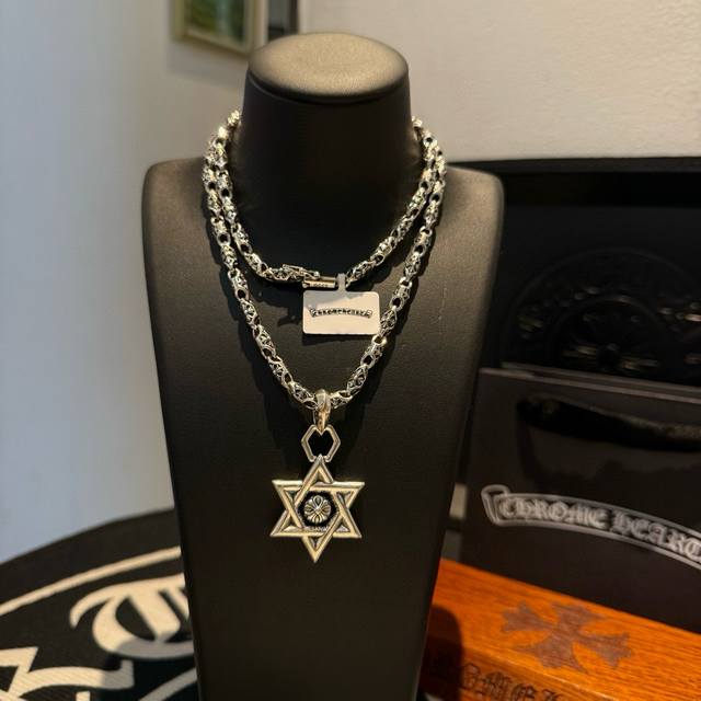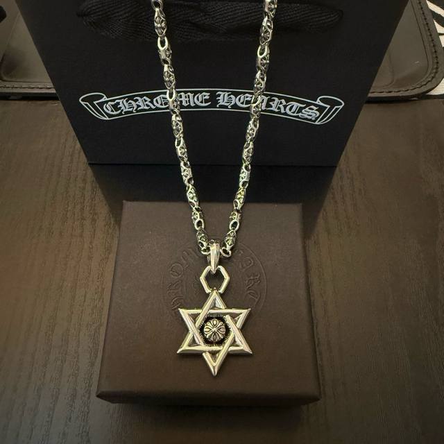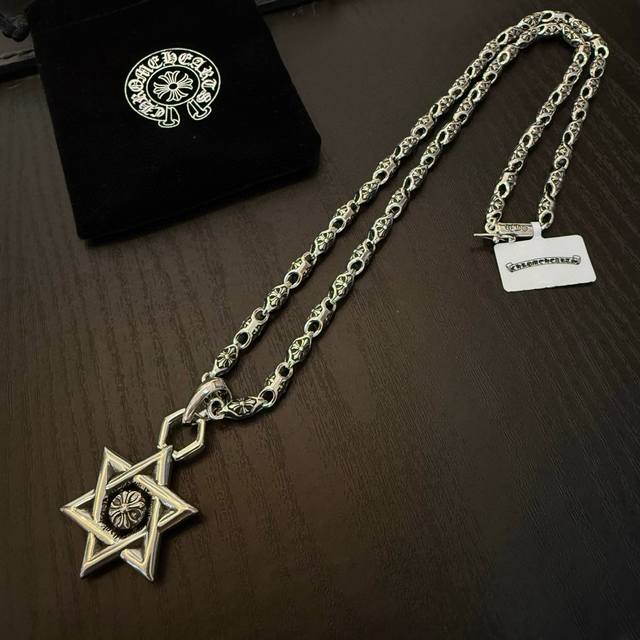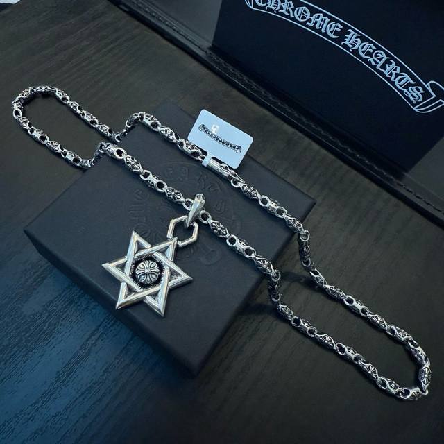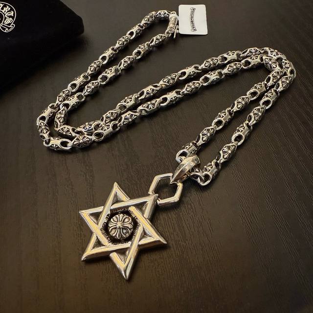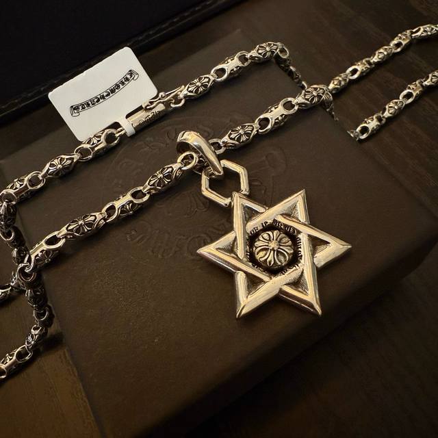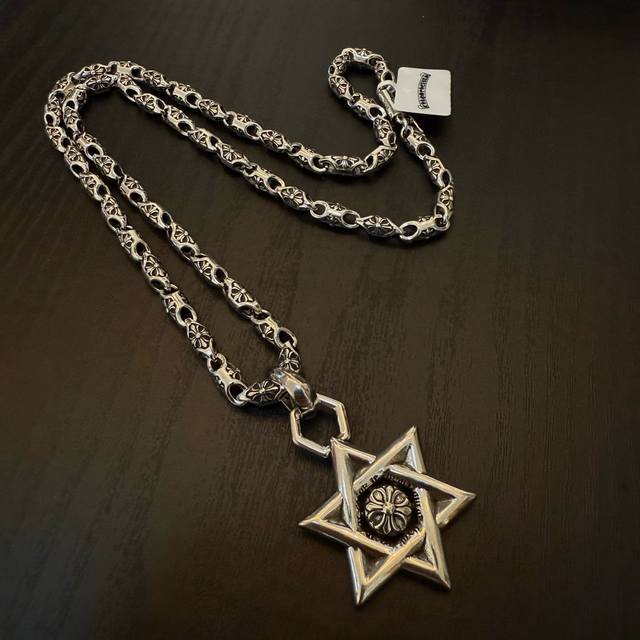 新款 专柜品质 Chrome Hearts克罗心经典复古十字花项链 六芒星吊坠 凹凸造型不同的花纹设计风格 呈现出与众不同 十字架 童军花是克罗心的志 所以更经久不衰 正品打版Chrome Hearts克罗心 区别市场普通轻版 对版对标品质 看字印细节 复古做旧灰氧程度.精工版本!!! 纯手工打造 ~正品开模潮流时尚必备 男女均可佩戴 情侣同款 官网原版 摇滚朋克泰银风格 复古元素 潮流百搭!