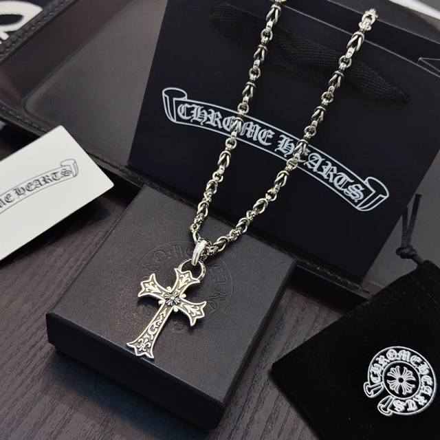 新款 专柜品质 Chrome Hearts克罗心经典复古多元素十字架项链,十字架吊坠 凹凸造型不同的花纹设计风格 呈现出与众不同 十字架 童军花是克罗心的志 所