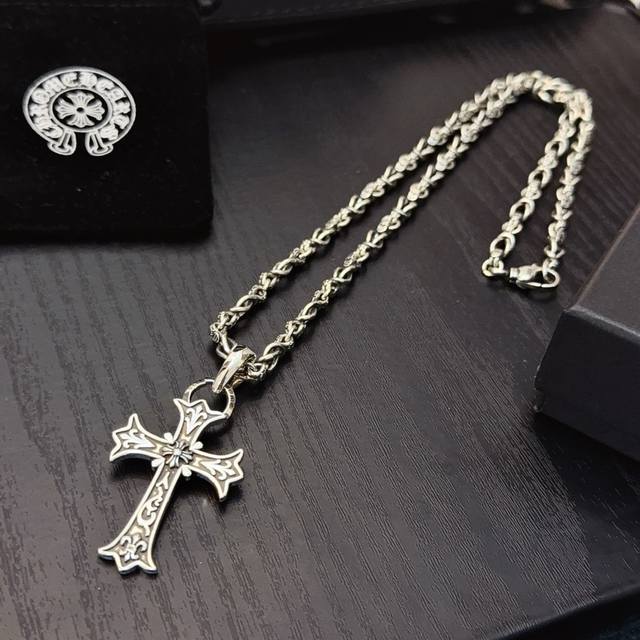 / 新款 专柜品质 Chrome Hearts克罗心经典复古多元素十字架项链,十字架吊坠 凹凸造型不同的花纹设计风格 呈现出与众不同 十字架 童军花是克罗心的志 所