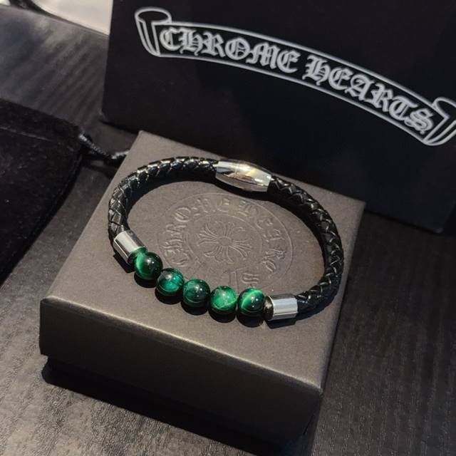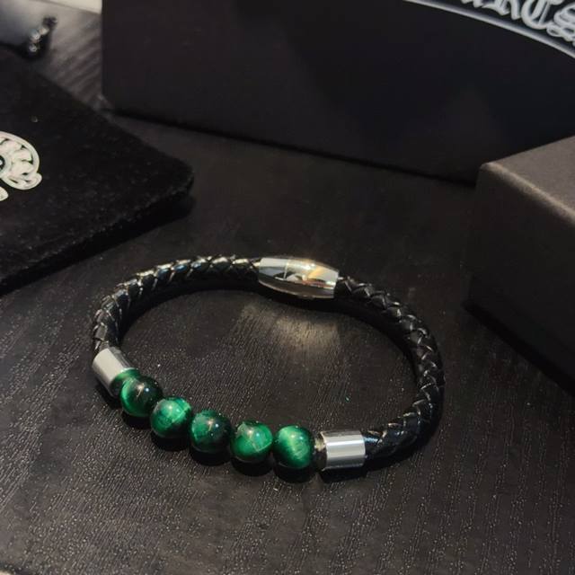 新款 专柜品质 Chrome Hearts克罗心绿虎眼石皮绳手镯手绳,凹凸造型不同的花纹设计风格呈现出与众不同 十字架童军花是克罗心的标志 所以更经久不衰 正品打版Chrome Hearts克罗心 区别市场普通轻版 对版对标品质 看字印细节 复古做旧灰氧程度.精工版本!