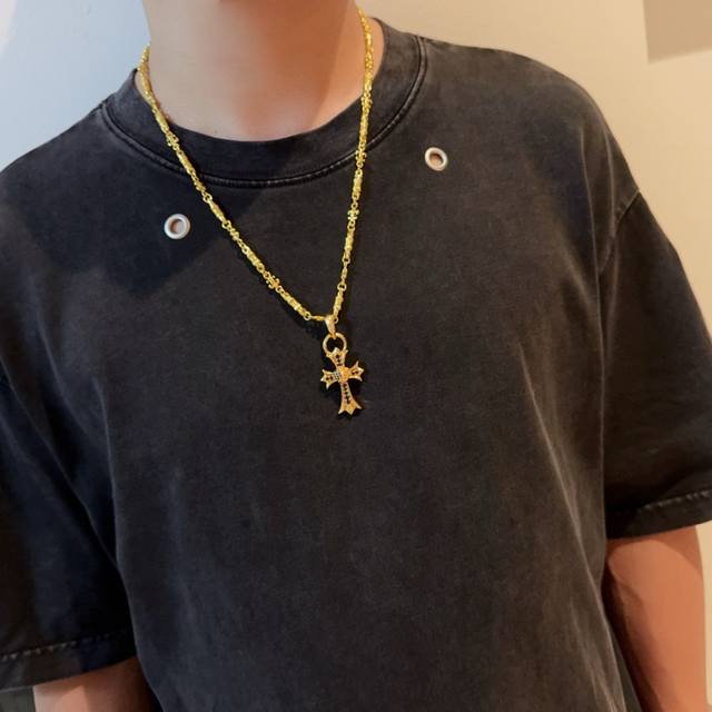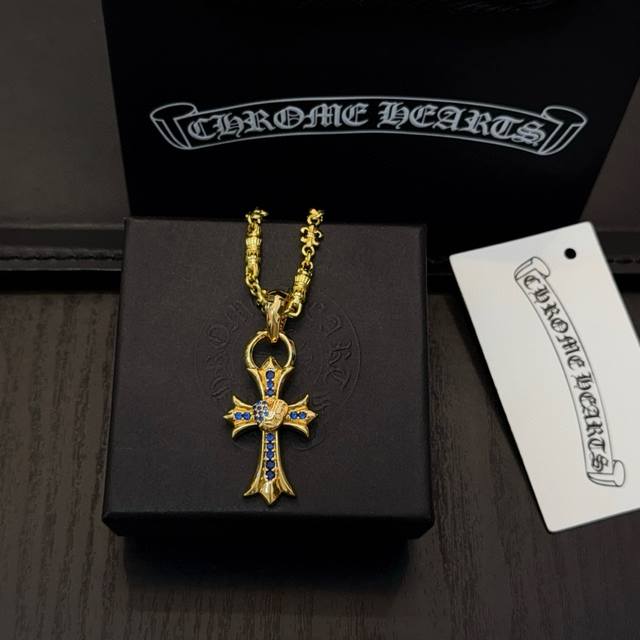新款 专柜品质 Chrome Hearts克罗心黄金色字母项链 蓝钻藤蔓爱心十字架吊坠 凹凸造型不同的花纹设计风格 呈现出与众不同 十字架 童军花是克罗心的志 所以更经久不衰 正品打版Chrome Hearts克罗心 区别市场普通轻版 对版对标品质 看字印细节 复古做旧灰氧程度.精工版本!!! 纯手工打造 ~正品开模潮流时尚必备 男女均可佩戴 情侣同款 官网原版 摇滚朋克泰银风格 复古元素 潮流百搭! DDD