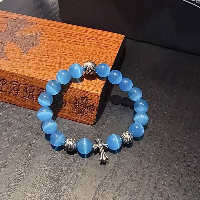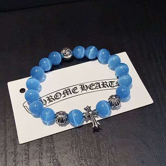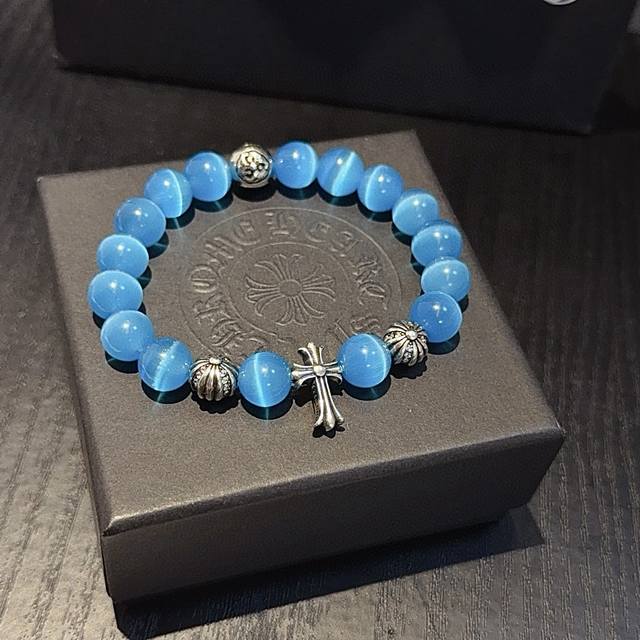 / 新款 专柜品质 Chrome Hearts克罗心 经典复古多元素海之蓝手链手串,凹凸造型不同的花纹设计风格 呈现出与众不同 十字架 童军花是克罗心的志 所以更经