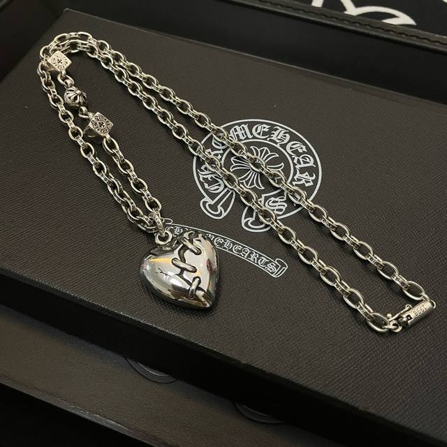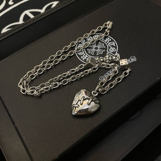 / 新款 专柜品质 Chrome Hearts克罗心 经典复古多元素项链 心型吊坠 凹凸造型不同的花纹设计风格 呈现出与众不同 十字架 童军花是克罗心的志 所以更经