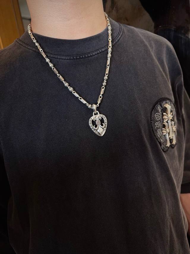 新款 专柜品质 Chrome Hearts克罗心 经典复古骷髅头项链 心型童军花吊坠 凹凸造型不同的花纹设计风格 呈现出与众不同 十字架 童军花是克罗心的志 所以更经久不衰 正品打版Chrome Hearts克罗心 区别市场普通轻版 对版对标品质 看字印细节 复古做旧灰氧程度.精工版本!!! 纯手工打造 ~正品开模潮流时尚必备 男女均可佩戴 情侣同款 官网原版 摇滚朋克泰银风格 复古元素 潮流百搭!