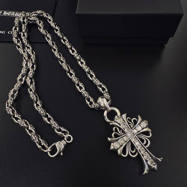 爆款推荐] 克罗心项链,帅爆了克罗心项链 造型不同的花纹设计风格 呈现出与众不同 十字架 童军花是克罗心的标志所以更经久不衰 正品打版Chrome Hearts