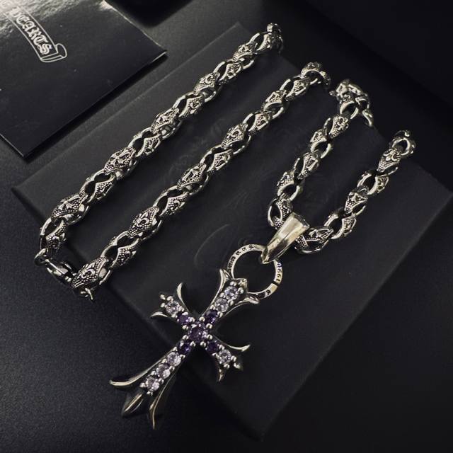 爆款推荐] 克罗心项链,帅爆了克罗心项链 造型不同的花纹设计风格 呈现出与众不同 十字架 童军花是克罗心的标志所以更经久不衰 正品打版Chrome Hearts