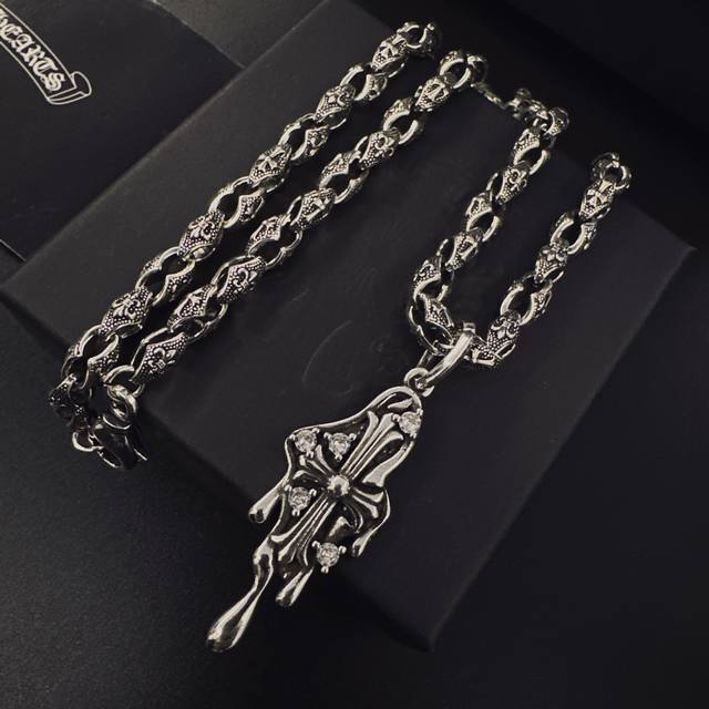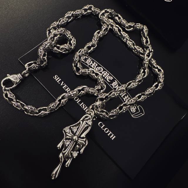 爆款推荐] 克罗心项链,帅爆了克罗心项链 造型不同的花纹设计风格 呈现出与众不同 十字架 童军花是克罗心的标志所以更经久不衰 正品打版Chrome Hearts