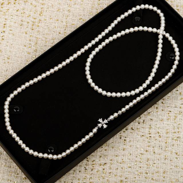 克 联名珍珠十字架毛衣链 Mikimoto