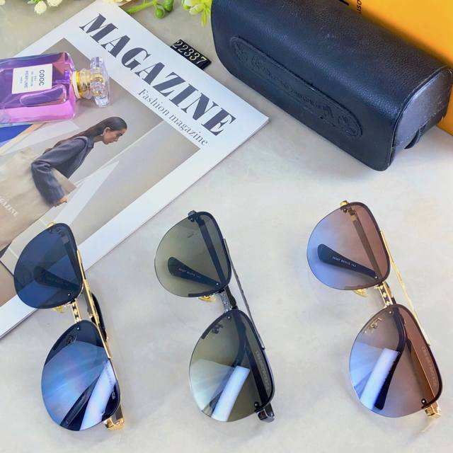 克罗心新款复古时尚金属太阳镜半框双梁墨镜男女高级感防晒蛤蟆太阳眼镜 DDD