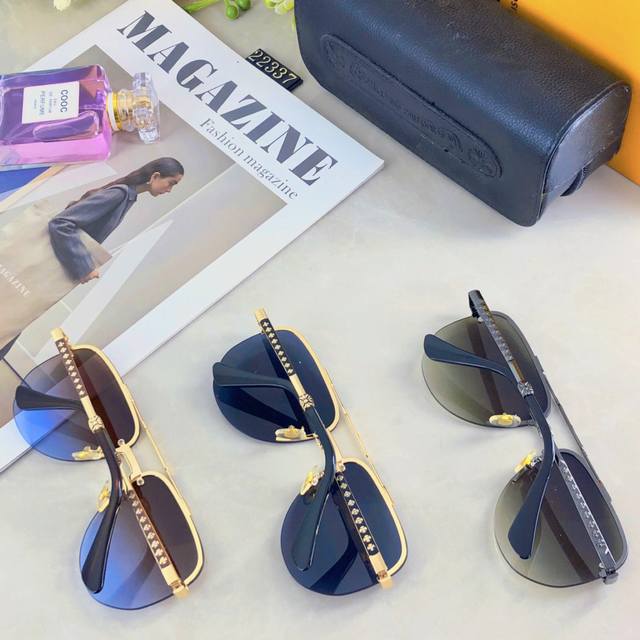枪色 Chrome Heart太阳镜 灭世纵横版狠货 钛板一体立体眼罩感设计.工艺难度成本极高 脚套全部采用意大利进口板料打磨细节精美...