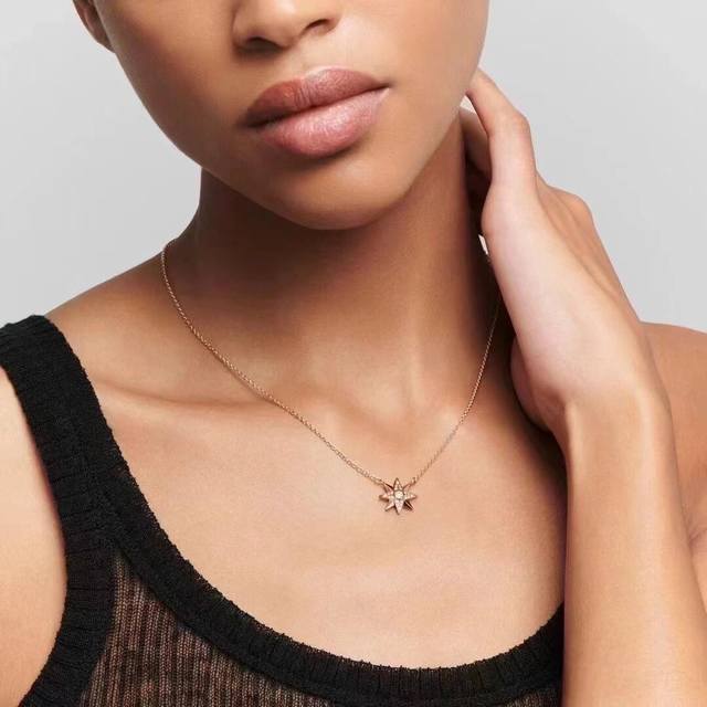 饰以玫瑰色 和珍贵的钻石装饰,设计精巧,彰显现代魅力。可与 Rose Des Vents 系列的其他项链搭配。通体采用925银,厚金电镀,保色程度更久。