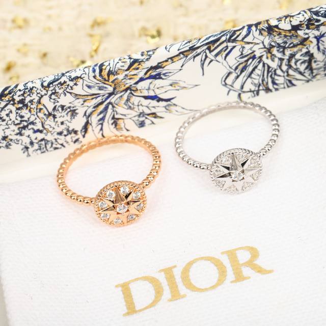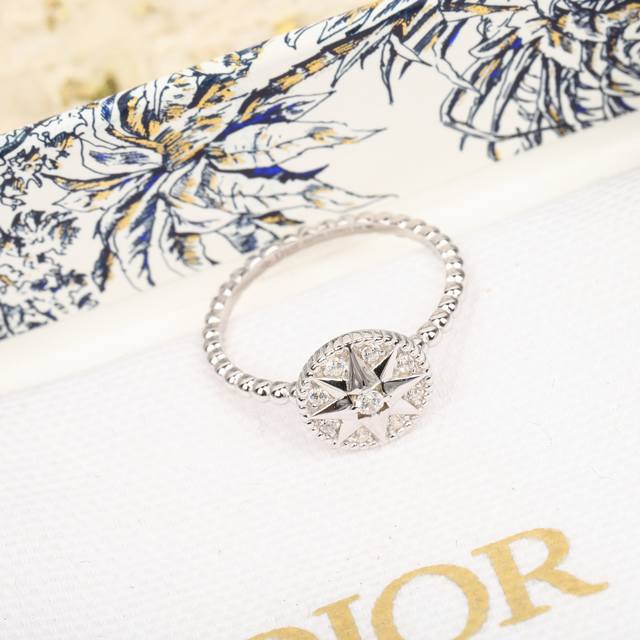 维多利娅 德卡斯特兰 Victoire De Castellane 以八芒星造型的罗盘玫瑰重新诠释 Dior 先生的幸运星。以钻石点缀,璀璨夺目。珍贵的款式展现珠宝专业技术和 Dior 的精湛工艺。通体采用925银,保色程度更久。