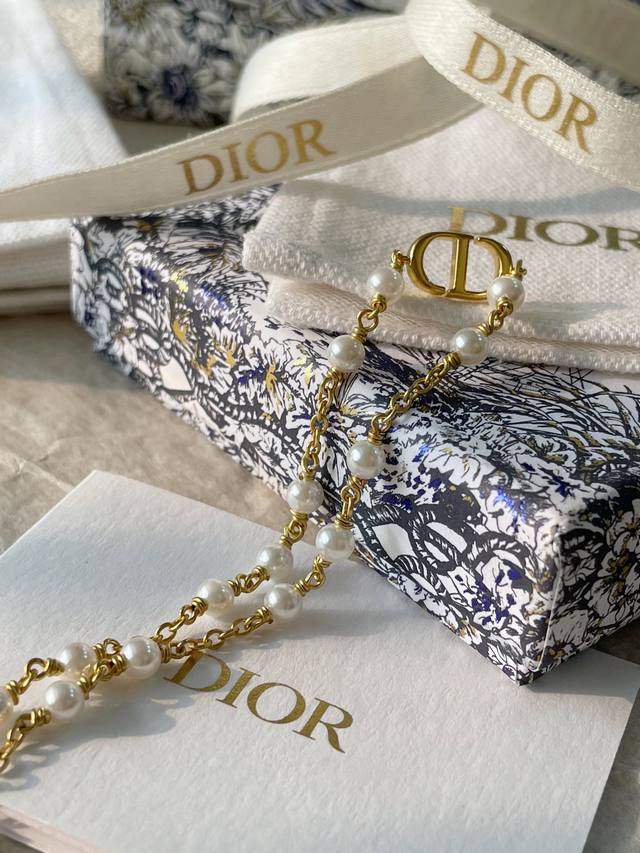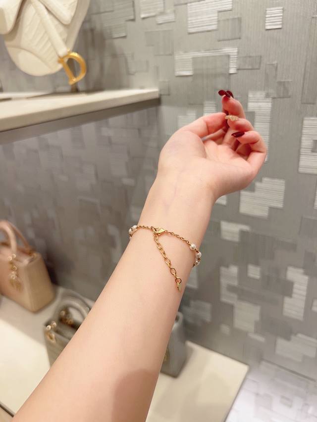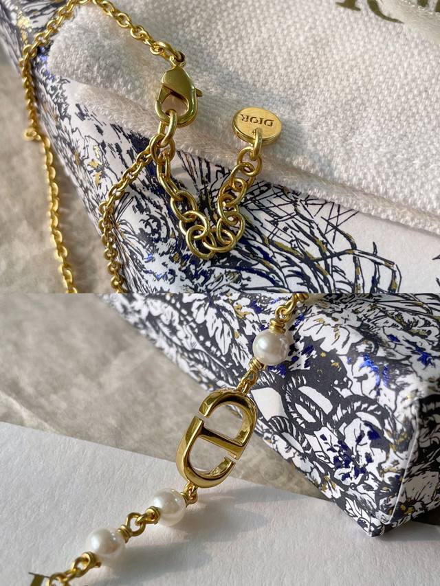/ 编号Dsl0071 Dior最新款珍珠手链Cd光面 一致Zp黄铜材质