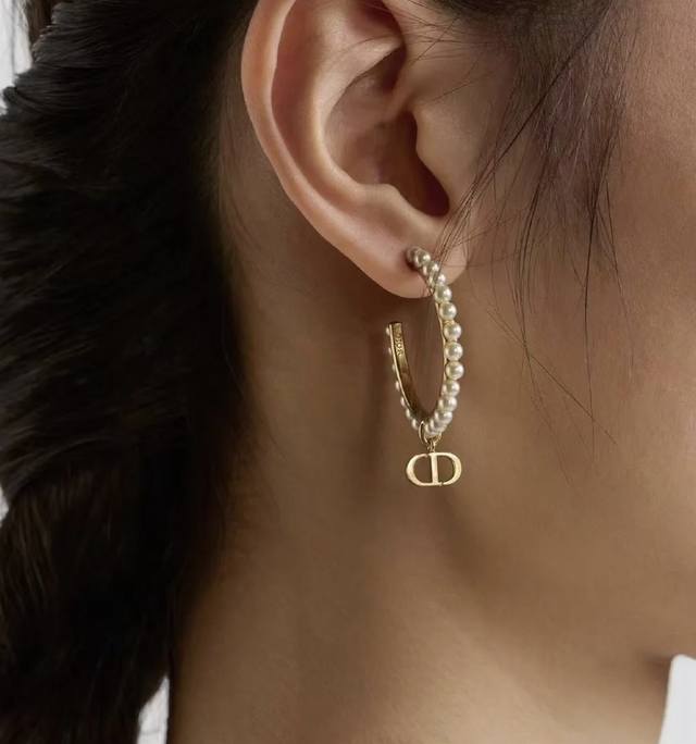 采用金色饰面金属精心制作,珍珠镶嵌耳圈简简单单又很贵气