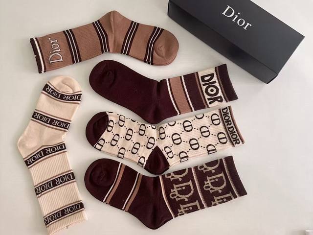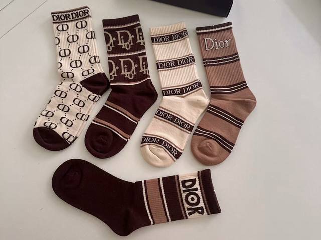 / 特 Dior 迪奥D家新品女款长筒袜子 一盒五双 纯棉材质,上脚柔软舒适,满满的老花经典Logo,炒鸡Nice大牌出街,潮人必备超好搭