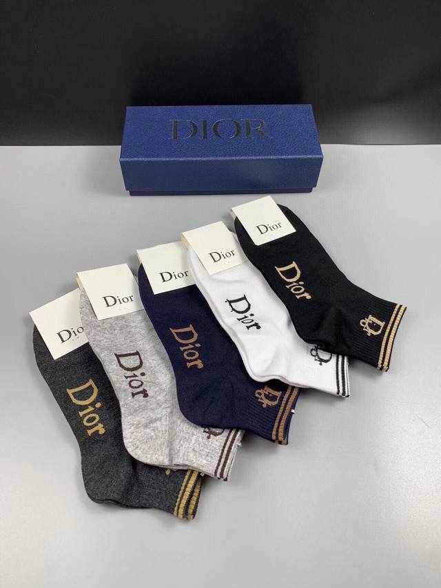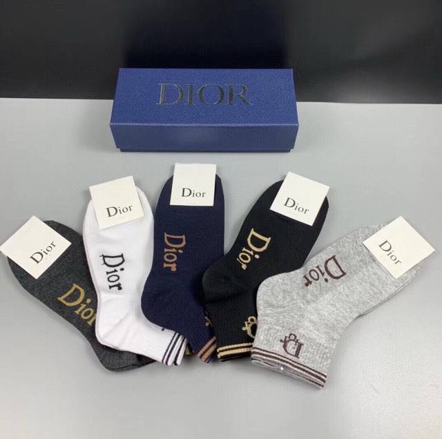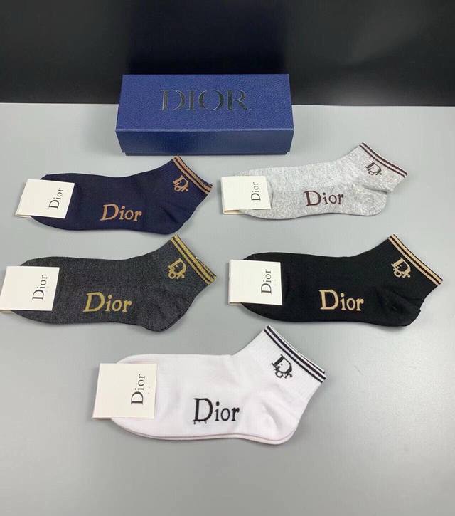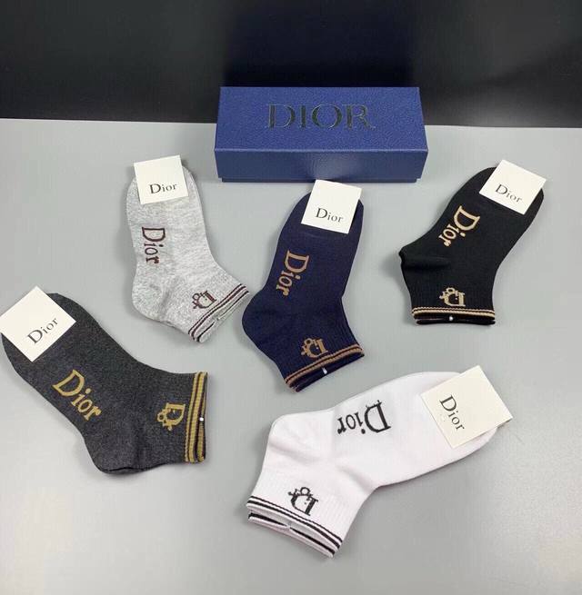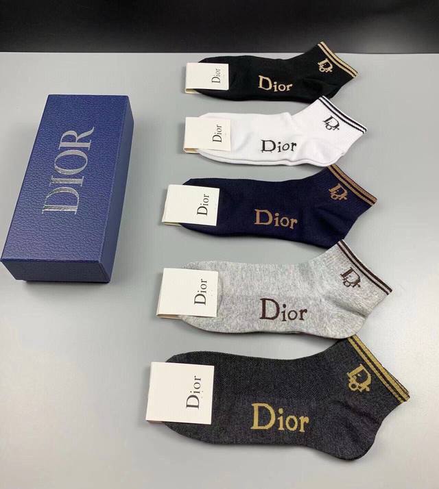 / 特 Dior 迪奥D家新品短款袜子 一盒五双 纯棉材质,上脚柔软舒适,经典的D家字母Logo,炒鸡Nice大牌出街,潮人必备超好搭