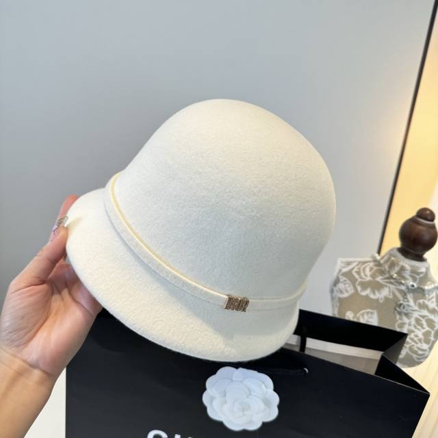 / 白色 Dior迪奥 秋冬款羊毛盆帽, 很洋气的款式呦!跟以往不同的风格,这款精致简约 更深得我心,不规则帽型 机场秀必备单品! 特别百搭呦!黑 白两色 内里绸缎