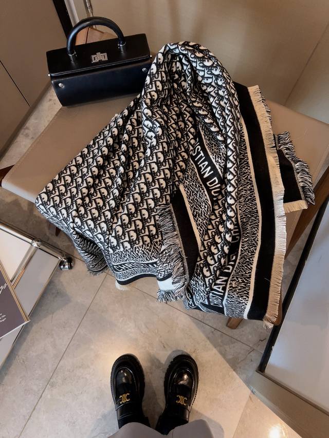 这样的Dior老花真的是无敌时髦百搭!!专柜最新款! 爆赞推荐!Dior今年22秋冬新出Oblique印花老花披肩,采用轻盈的羊毛、桑蚕丝和羊绒混纺面料精心制作,重新诠释标志性的老花图案。搭配流苏,点缀以对比鲜明的“Christian Dior”标志提花条形图案。两个色,气质无可替代的“丹宁蓝”和“高级灰”!品质非常好!面料的质感让纹路清晰工整,这个不收真的等着后悔哦~随便围围,出去绝对是回头率超高!!!既有气场又有高级感的配饰!四季理想配饰,可以搭配所有风格!!!尺寸规格:140Cm*140Cm,60%