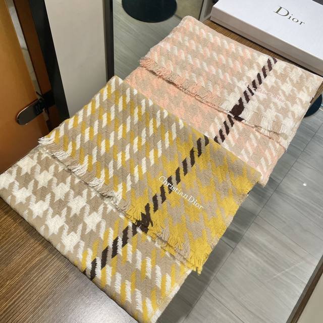 Dior 迪奥 爆款继续!明星同款新千鸟格围巾 ,经典配色永远不会过时,而且超百搭。超级好看!!果断自留!精致散须 率真不拘泥 适合各种造型 精妙绝伦 不多介绍 自己看,颜色真的是随意搭配、简约大方的搭配单品可披可围!随意凹造型 尺寸35*180 DDD