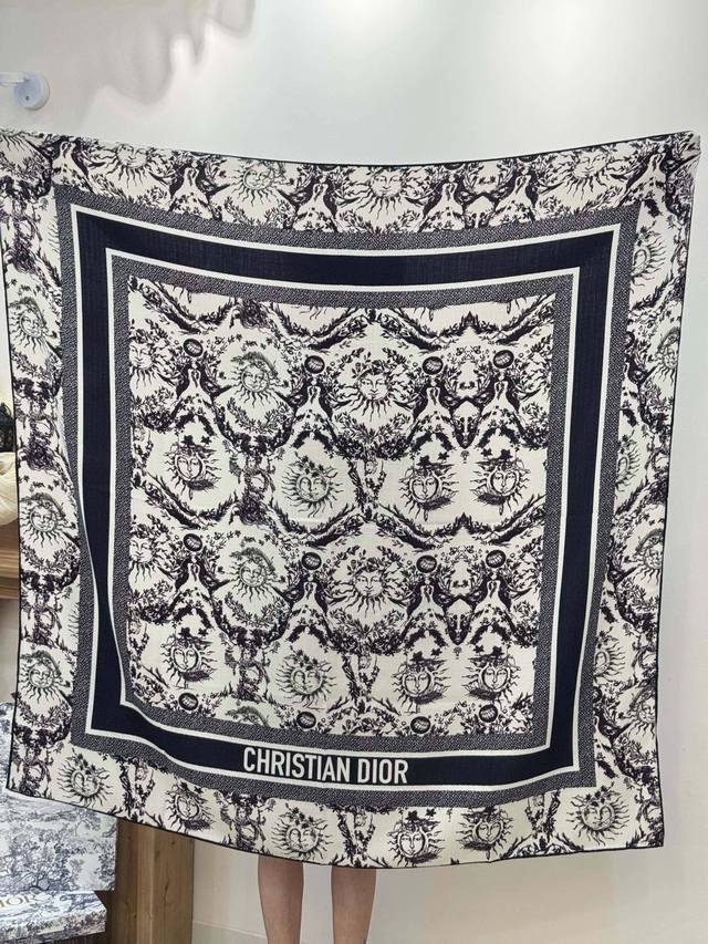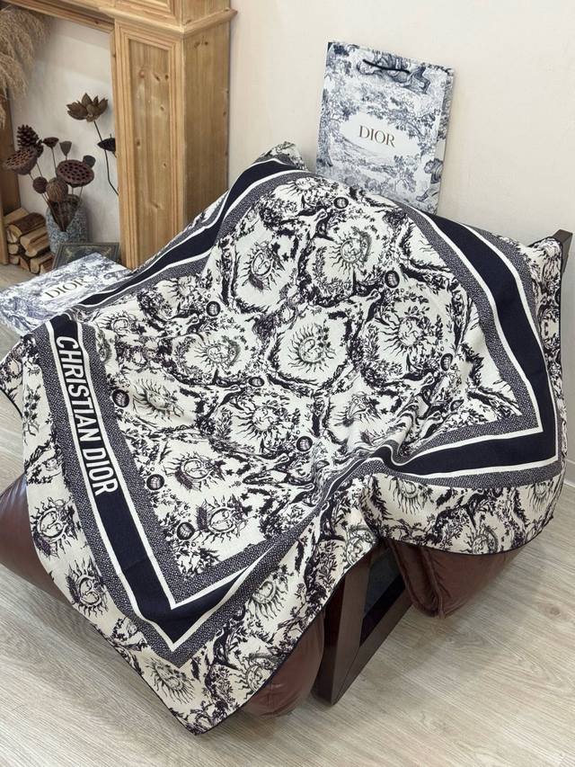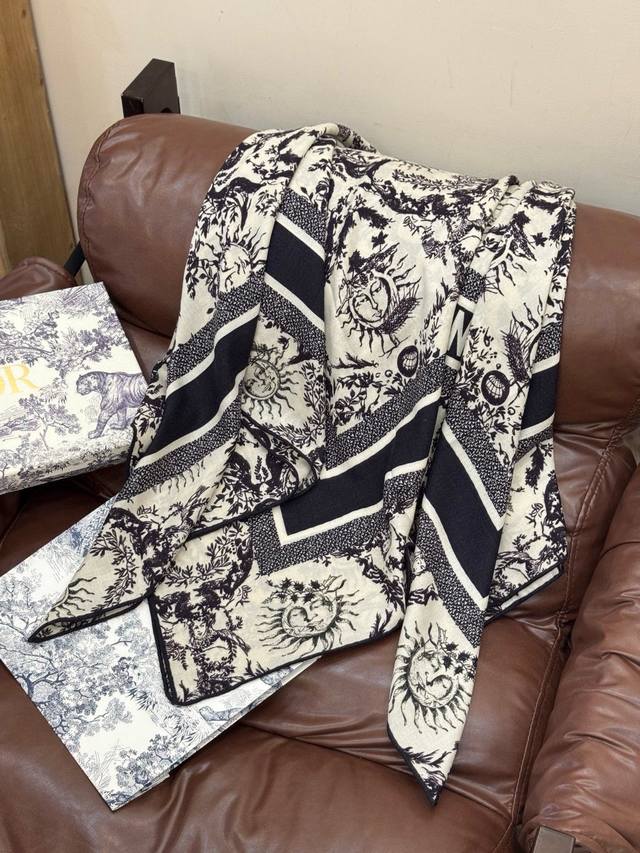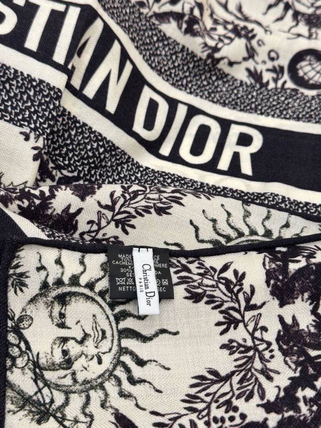 Dior 140丝绒双面同色印花披肩 DDD 这款 Dior 丝绒披肩以彼得罗鲁福 pietro Ruffo 设计的papillon 以优雅而梦幻的设计彰显精美的图案。采用白色和黑色丝绒面料精心制作,手工卷边,点缀以对比鲜明的 Christian Dior 标志提花条形图案。别致高雅,为佩戴丝毛方巾提供更多穿搭灵感,可与该系列的长裤或半身裙搭配,打造精致的经典造型。 DDD 白色和黑色面料 papillon DDD Christian Dior 标志对比鲜明的提花条形图案 DDD 手工卷边 DDD 30%