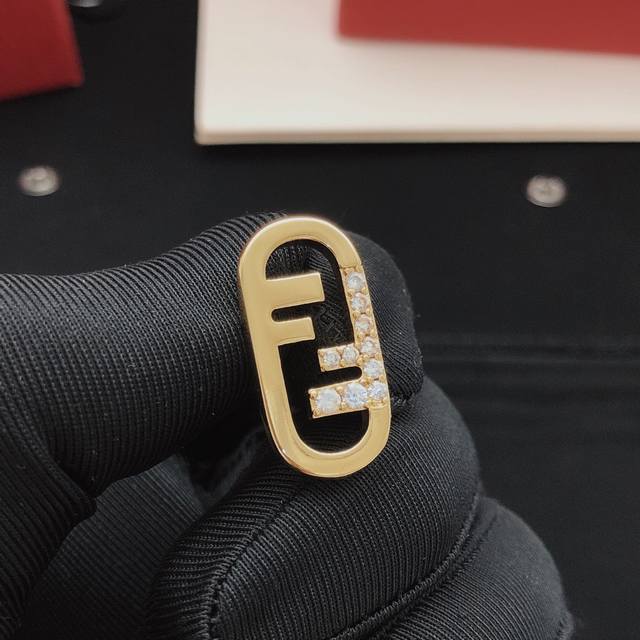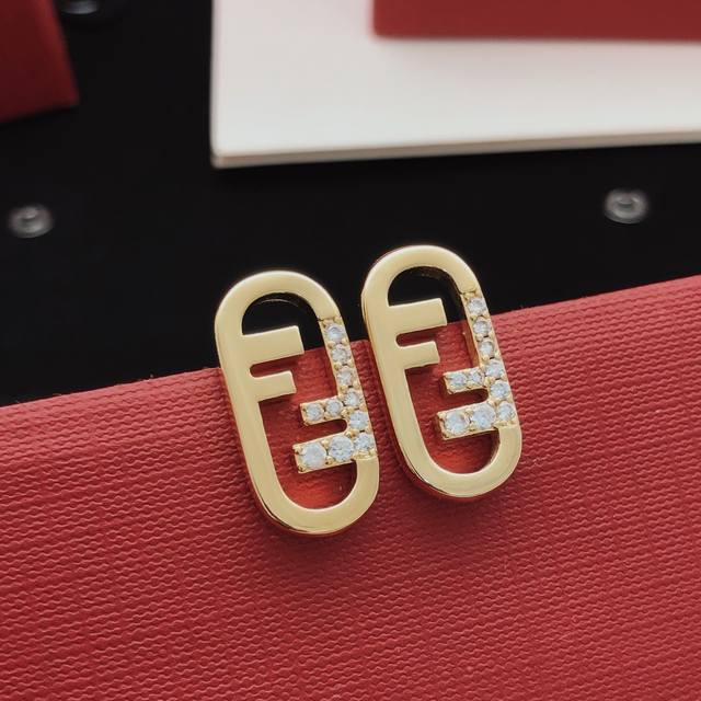 / 编号Fded0068 Fend*最新款光面镶钻耳钉 一致Z批黄铜材质